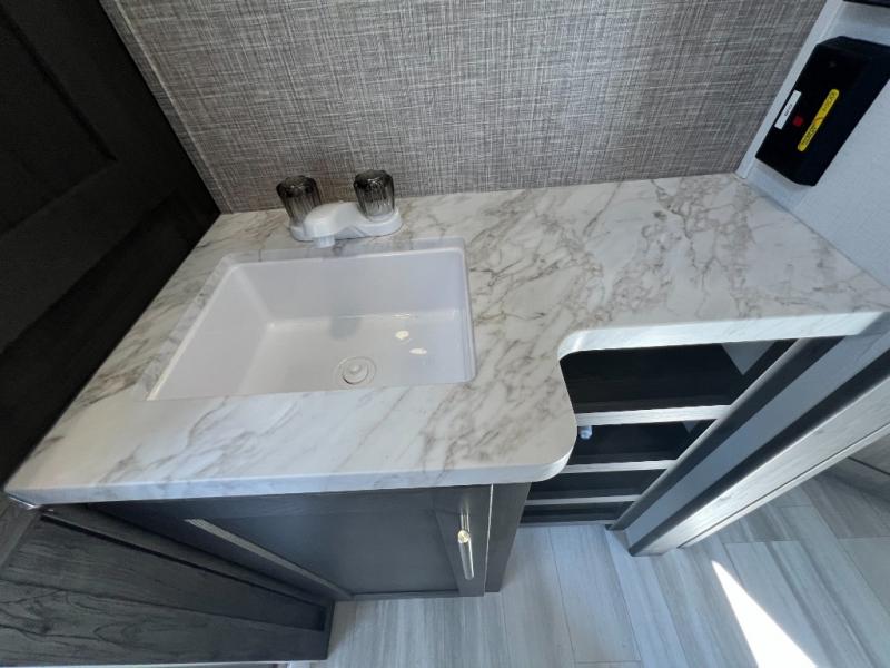 Embrace the great outdoors with a Fuzion Impact Edition toy hauler by Keystone! There are laminated fiberglass sidewalls and a 8' 4" wide-body construction for your toys and gear! The one-piece polypropylene heated underbelly includes enclosed tanks and valves which will help extend your camping season, and the leaf spring suspension system will provide smooth towing. Head inside to enjoy night shades, hardwood cabinetry, and fiberglass backed linoleum floor with no carpet for easy cleaning. Each model also includes a Girard on-demand water heater, two 30 lb. LP tanks, recessed LED puck lighting throughout, and the list of comforts goes on!