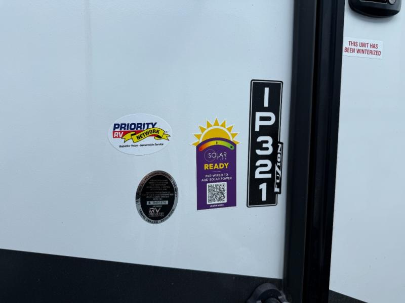 Embrace the great outdoors with a Fuzion Impact Edition toy hauler by Keystone! There are laminated fiberglass sidewalls and a 8' 4" wide-body construction for your toys and gear! The one-piece polypropylene heated underbelly includes enclosed tanks and valves which will help extend your camping season, and the leaf spring suspension system will provide smooth towing. Head inside to enjoy night shades, hardwood cabinetry, and fiberglass backed linoleum floor with no carpet for easy cleaning. Each model also includes a Girard on-demand water heater, two 30 lb. LP tanks, recessed LED puck lighting throughout, and the list of comforts goes on!