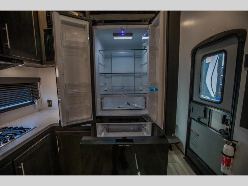 Embrace the great outdoors with a Fuzion Impact Edition toy hauler by Keystone! There are laminated fiberglass sidewalls and a 8' 4" wide-body construction for your toys and gear! The one-piece polypropylene heated underbelly includes enclosed tanks and valves which will help extend your camping season, and the leaf spring suspension system will provide smooth towing. Head inside to enjoy night shades, hardwood cabinetry, and fiberglass backed linoleum floor with no carpet for easy cleaning. Each model also includes a Girard on-demand water heater, two 30 lb. LP tanks, recessed LED puck lighting throughout, and the list of comforts goes on!