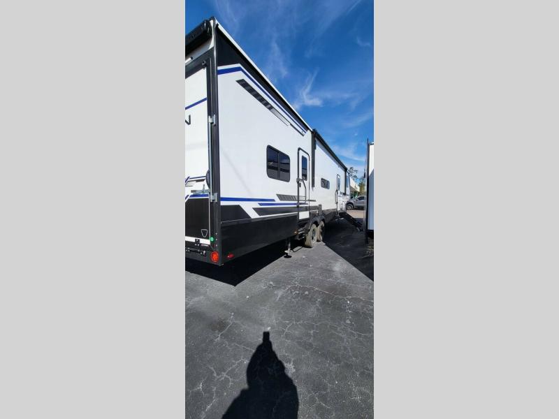 The 2026 Keystone Fuzion Impact Edition 361LT is a rugged and versatile toy hauler fifth wheel designed for outdoor enthusiasts who want to haul big gear (like ATVs or UTVs) while enjoying comfortable living space and modern amenities.