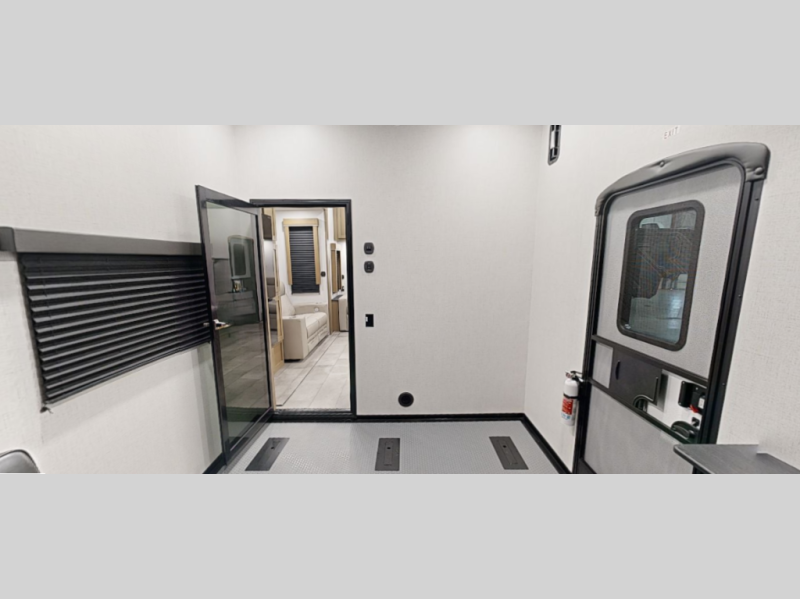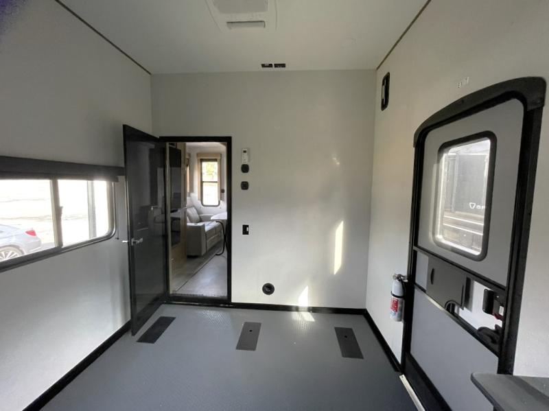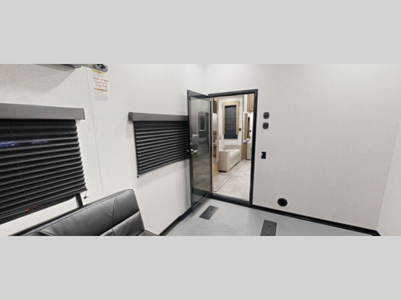 Bring ATVs, bikes, or gear with confidence thanks to gas and oil resistant Tuff Ply flooring, the 5K interlock tie down system, 8 foot ramp door, ducted heat and A/C, dual ram air vents, and a sliding rear patio door that helps transition the space into a bonus living zone.
