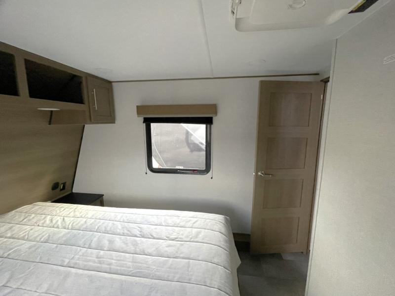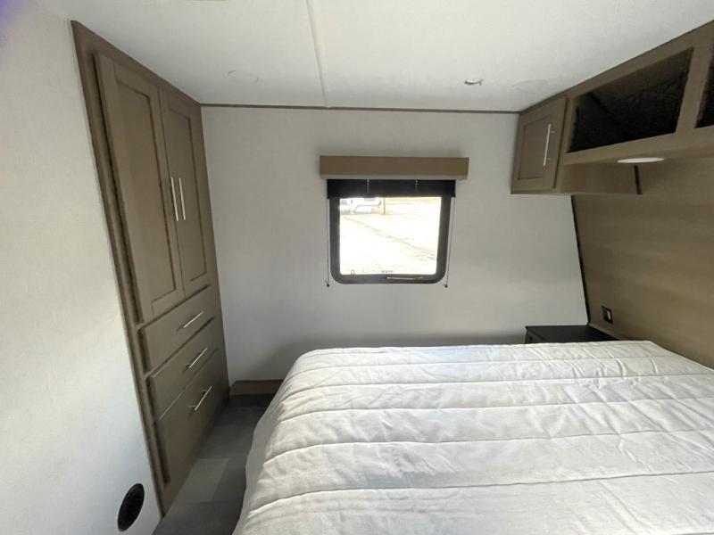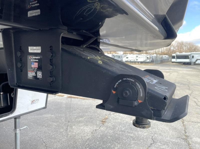 Enjoy smooth towing with the Rota-Flex pin box, 7,000 lb. flipped Dexter axles, leaf spring suspension, and 16 inch wheels with G rated tires. A 30 inch entry door, SolidStep entry system, and lighted pass through storage add everyday convenience.