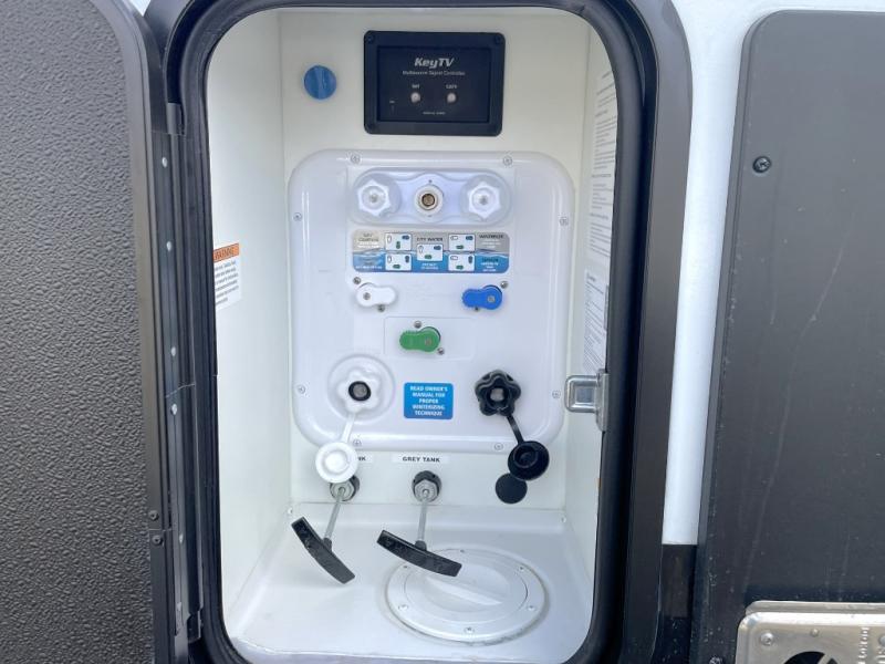 This model features a 50 amp service with detachable marine cord, fuel station with 30 gallon tank, exterior shower, battery disconnect, back up camera prep, and onboard convenience center. Tank capacities are generous with 94 gallon fresh, 88 gallon gray, and up to 88 gallon black.