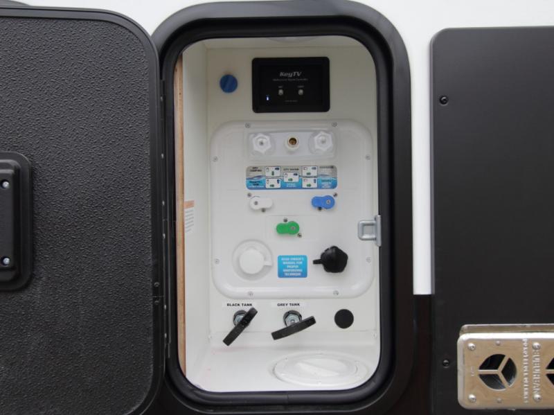 This model features a 50 amp service with detachable marine cord, fuel station with 30 gallon tank, exterior shower, battery disconnect, back up camera prep, and onboard convenience center. Tank capacities are generous with 94 gallon fresh, 88 gallon gray, and up to 88 gallon black.