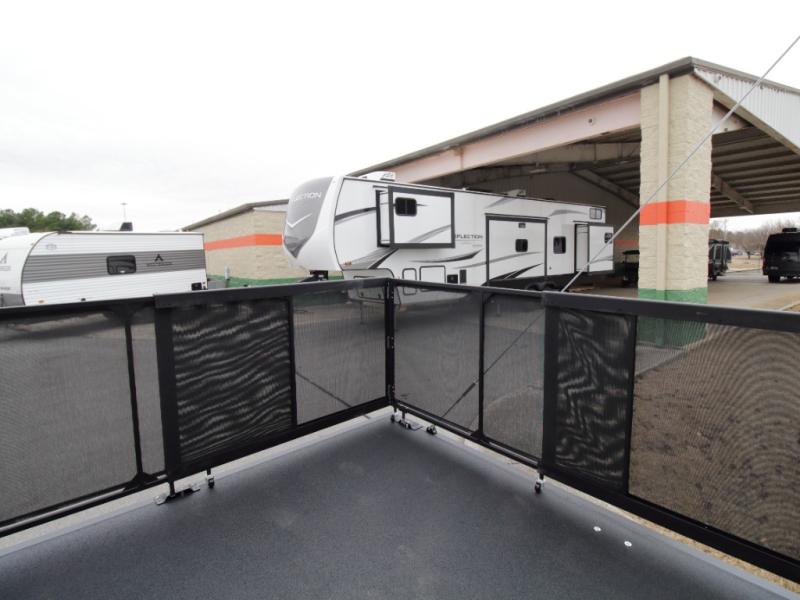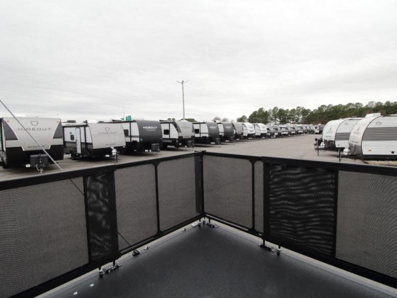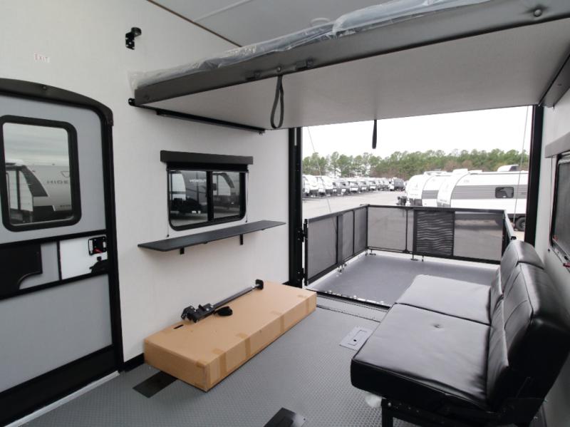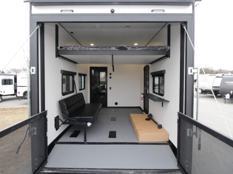 Bring ATVs, bikes, or gear with confidence thanks to gas and oil resistant Tuff Ply flooring, the 5K interlock tie down system, 8 foot ramp door, ducted heat and A/C, dual ram air vents, and a sliding rear patio door that helps transition the space into a bonus living zone.