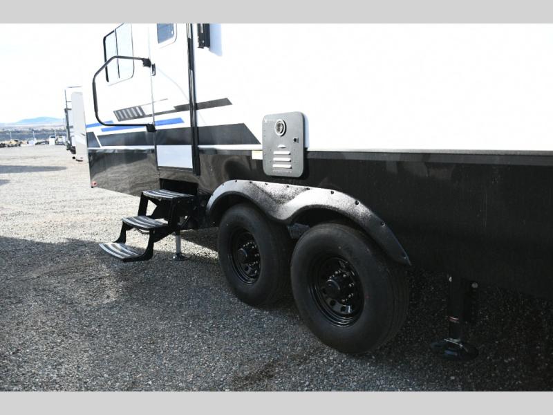 Keystone Fuzion Impact Edition toy haulers are designed to support active lifestyles. Large tinted safety glass windows provide great views while reducing heat and glare. Dexter E-Z Lube axles ensure smoother towing and easier maintenance, while the 5,000 lb. welded frame tie-downs keep your toys stable mile after mile. Furrion wireless backup camera prep adds confidence when maneuvering into tight campsites or storage areas.