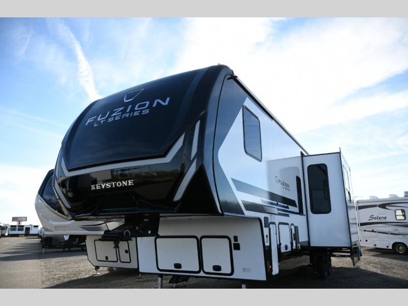The 2026 Keystone Fuzion Impact Edition 361LT is engineered for campers who live for adrenaline during the day and comfort at night. Designed to haul your toys without sacrificing livability, this LT Series toy hauler delivers rugged capability, smart storage, and residential-style features that make every trip feel effortless—whether you’re headed to the dunes, the trails, or your favorite off-grid escape.