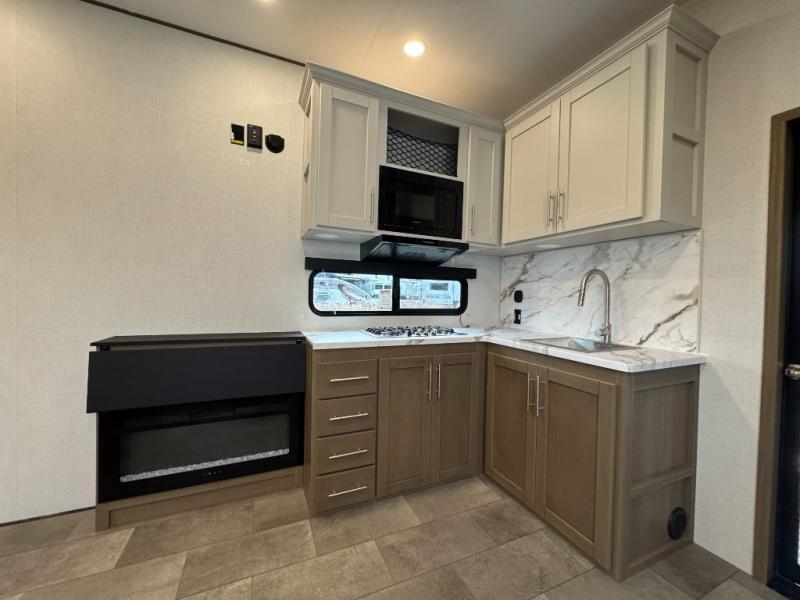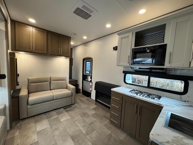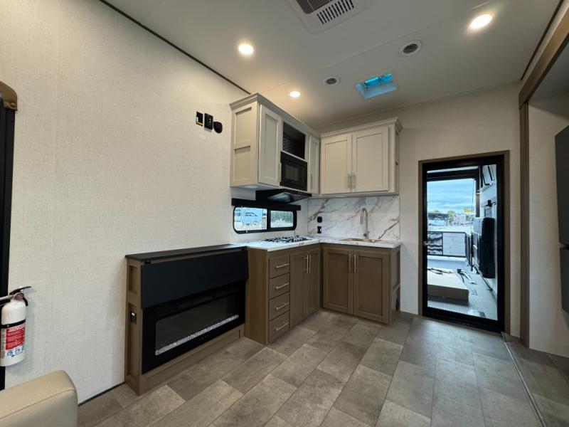The "LT" in 361LT stands for Lightweight Technology. This model bridges the gap between massive luxury toy haulers and travel trailers. It offers the stability of a Fifth Wheel without requiring a massive dually truck for safe towing.