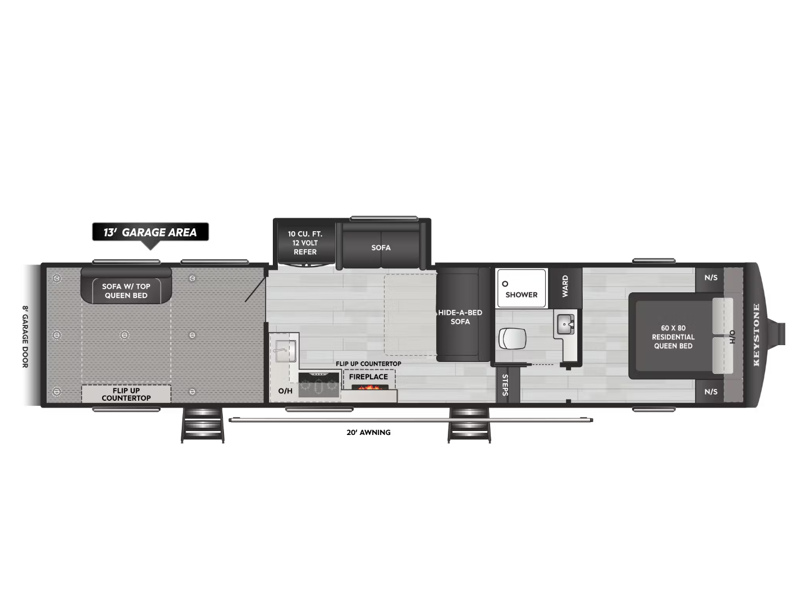 | Awning Info | 20' Electric with Adjustable Arms, Auto Dump, LED Light Strip |
