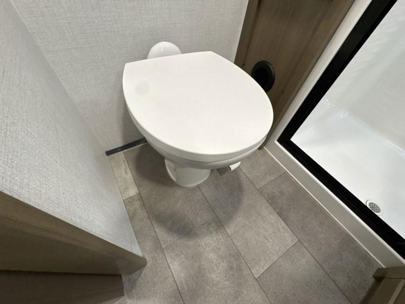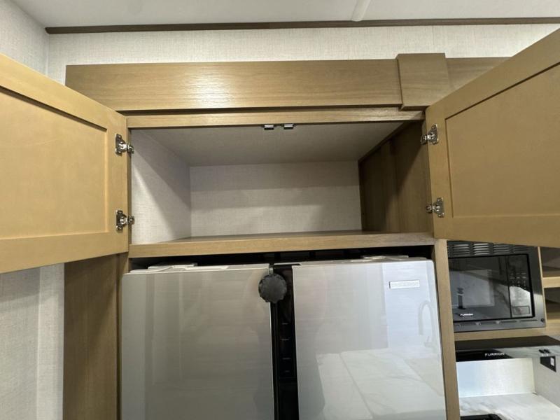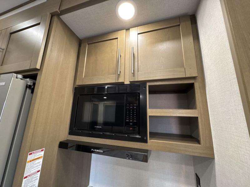 Fun with your toys is made easy with this 14' garage area toy hauler! Once the toys are unloaded, relax on the dual opposing sofas, or take a rest on the electric queen bed. The kids or guests can climb up into the loft that includes a bunk mat, and there is a half bath in the garage for added convenience. This model includes a peninsula countertop with plenty of space to prep meals and clean up, and there is a 16 cu. ft. 12V refrigerator for perishables. You'll find a residential shower with a seat in the dual entry bath, and the front bedroom will feel just like home with its Fuzion king bed and wardrobe slide for all your clothes.