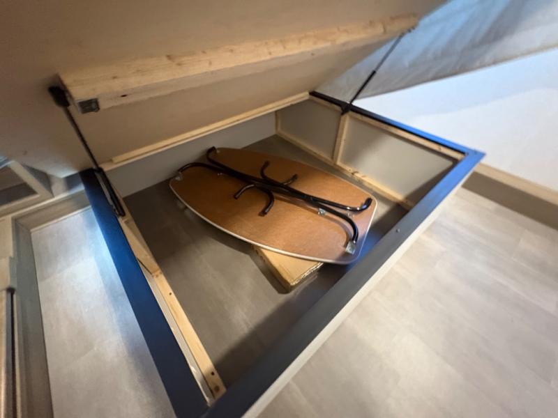 15-ft rear garage with convertible sofas and overhead queen lift bed