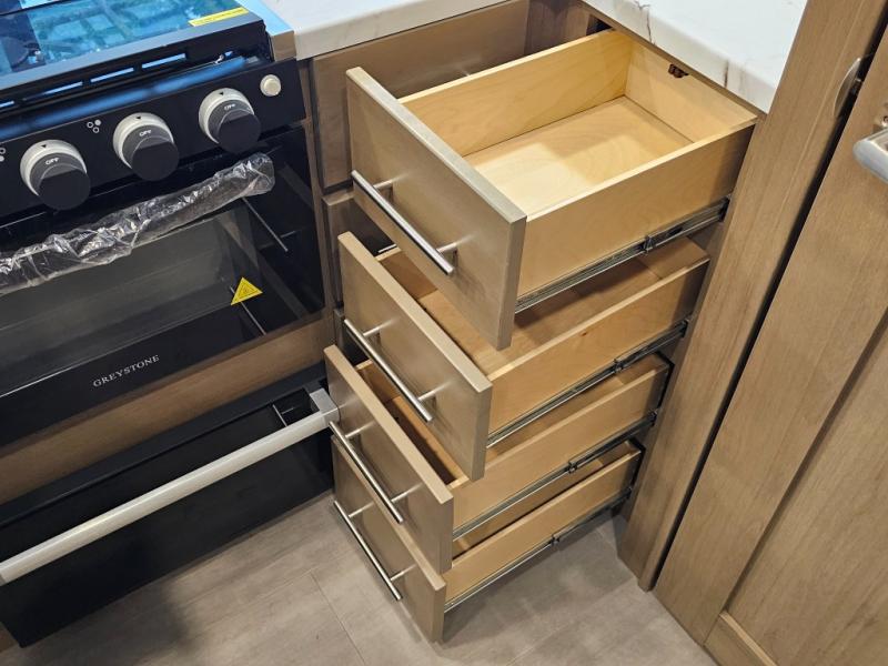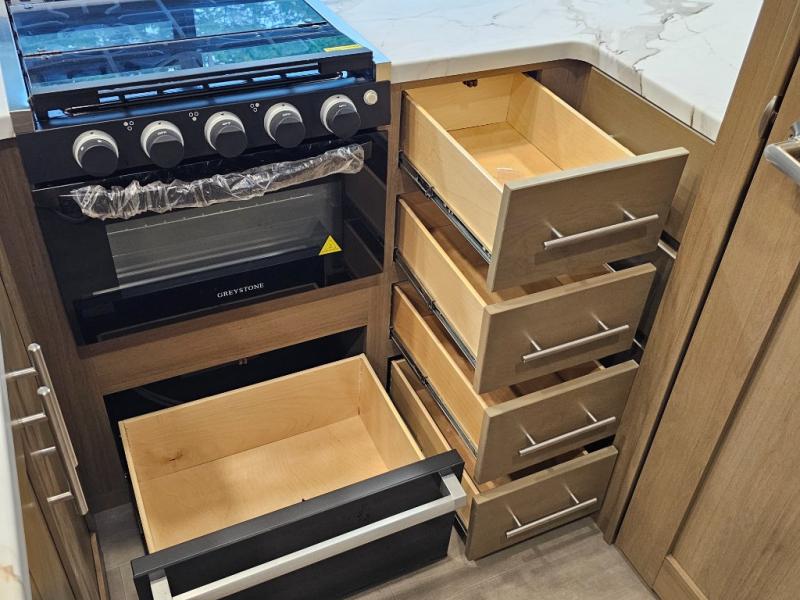 12V Refrigerator & Spacious Pantry – Plenty of room for your food and drinks for the whole crew.