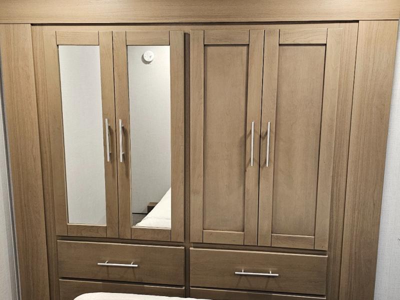 Residential touches like hardwood cabinetry, recessed LED lighting, and night shades.