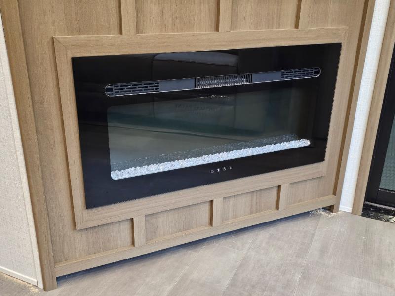 L-Shaped Sofa Slide Out – Gather inside with friends and enjoy the entertainment center and fireplace after a day of riding.