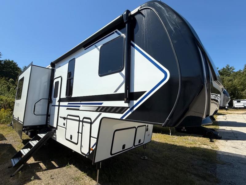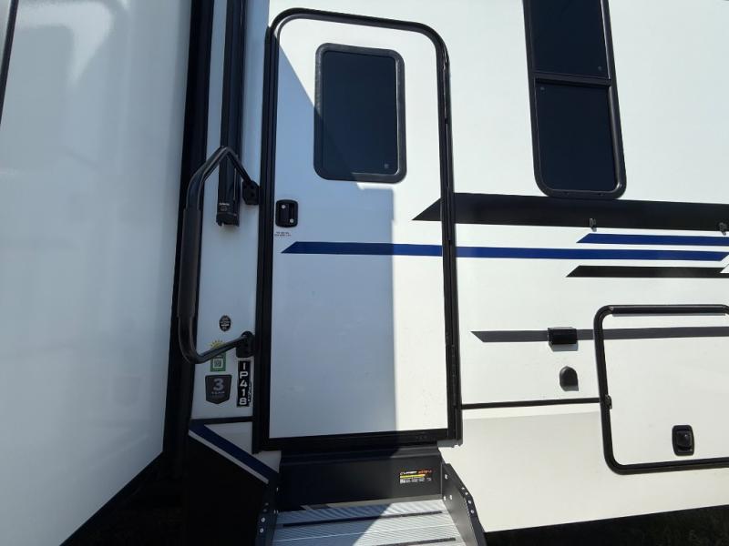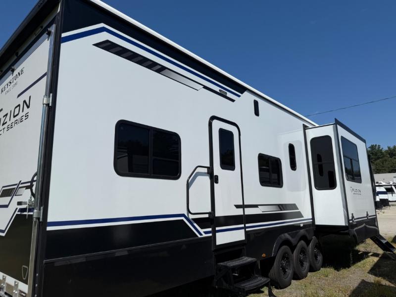The 2026 Keystone Fuzion Impact Edition 418 is a high-performance toy hauler fifth wheel designed for serious adventurers who don’t want to compromise on luxury. With a bold and rugged exterior and a spacious, well-thought-out interior, this model combines utility and comfort for those who live life on the move.