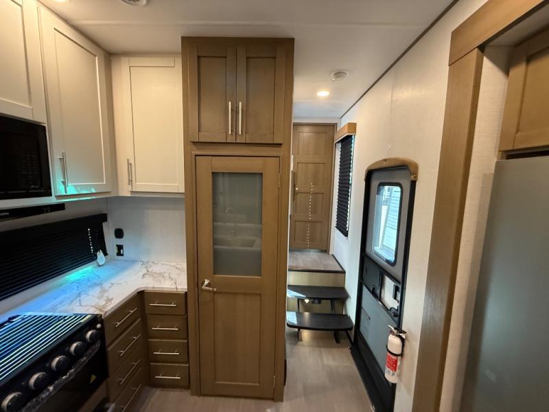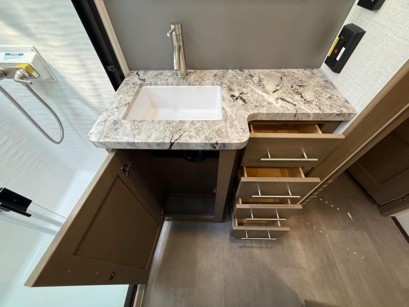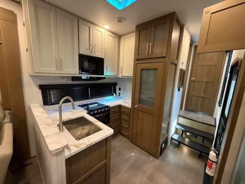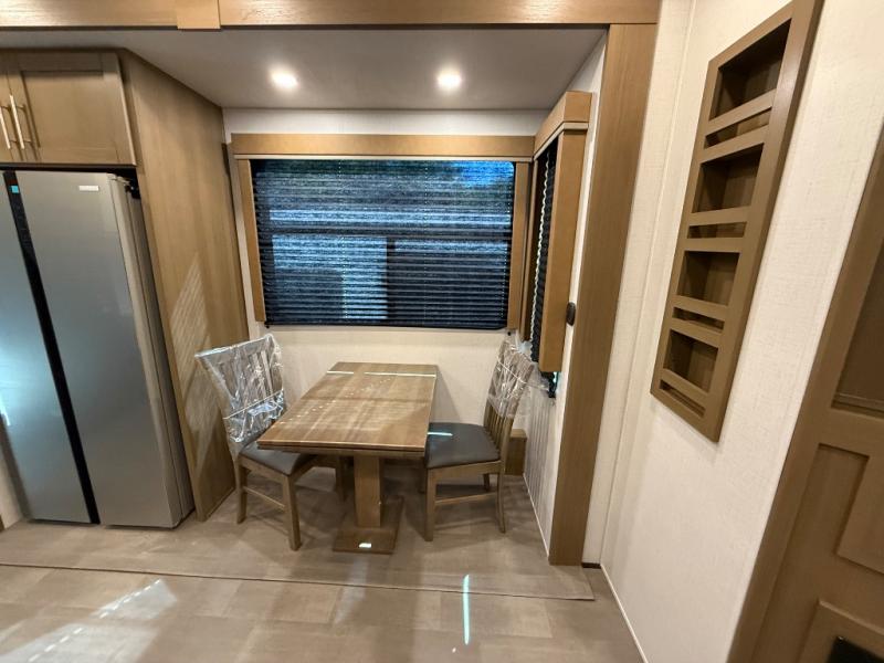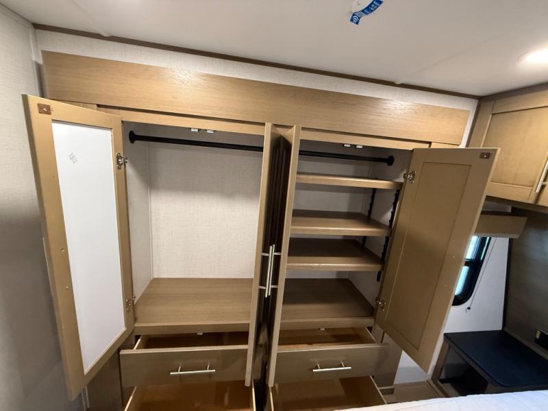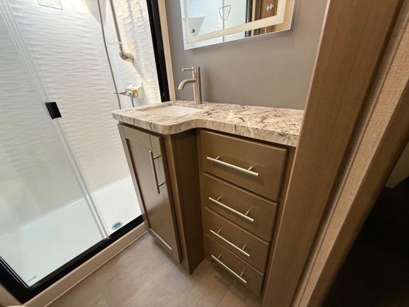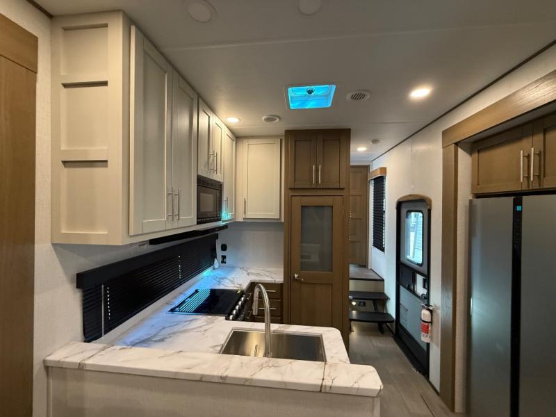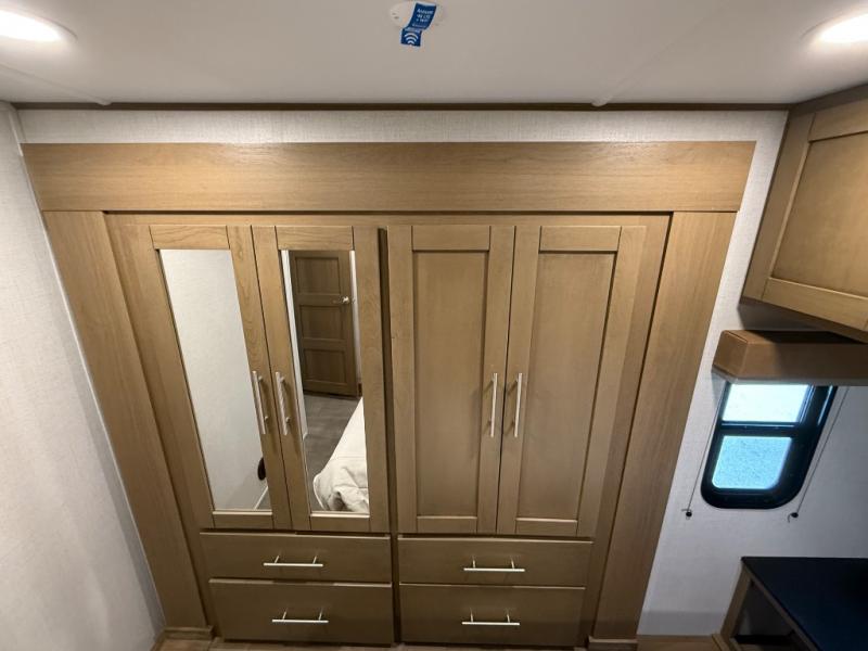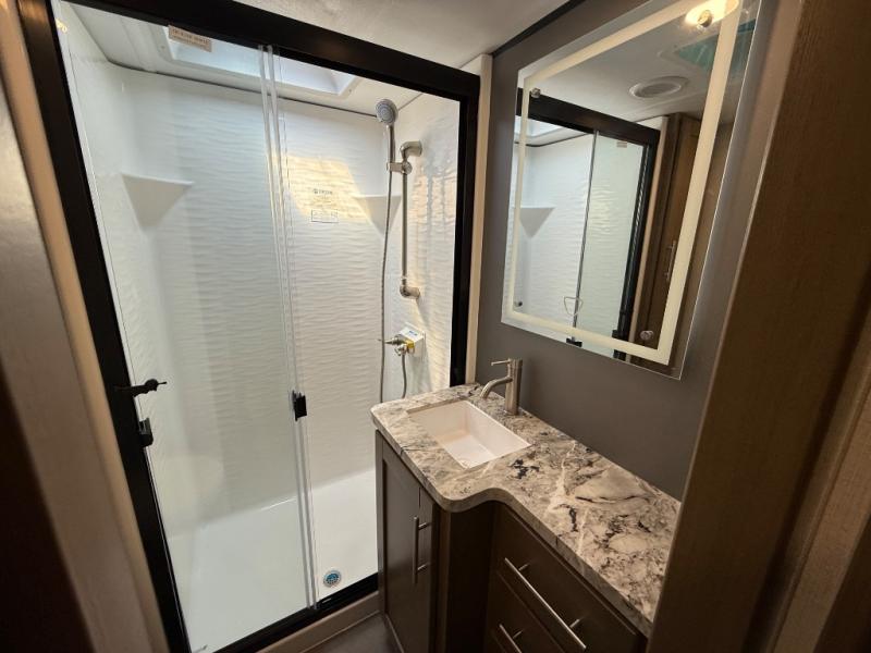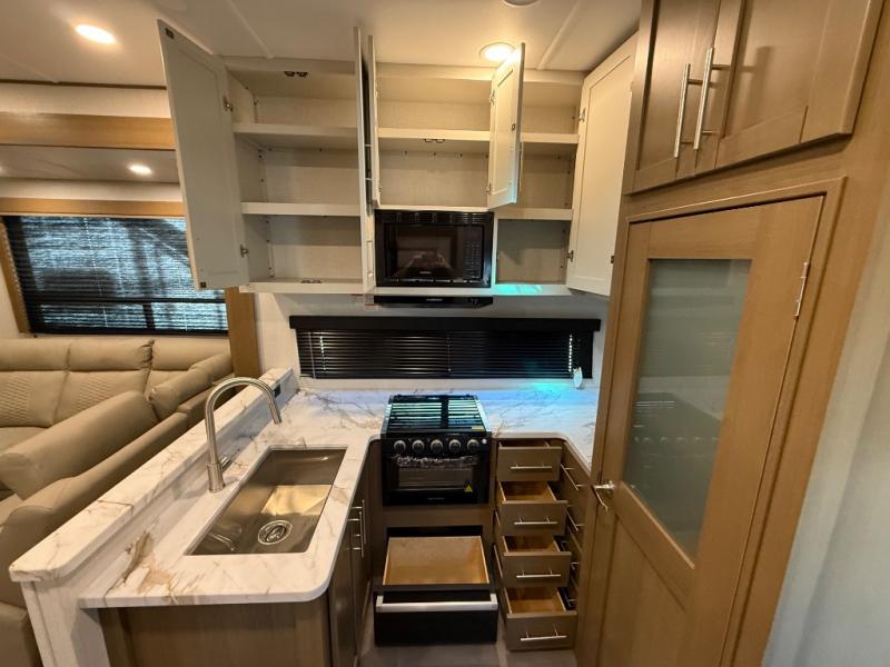 This model is built on a wide-body frame with a heated and enclosed underbelly, high-capacity axles, and a strong suspension system, making it suitable for extended trips and a variety of terrains. Dual air conditioners and an on-demand water heater add to the comfort and reliability of this RV.