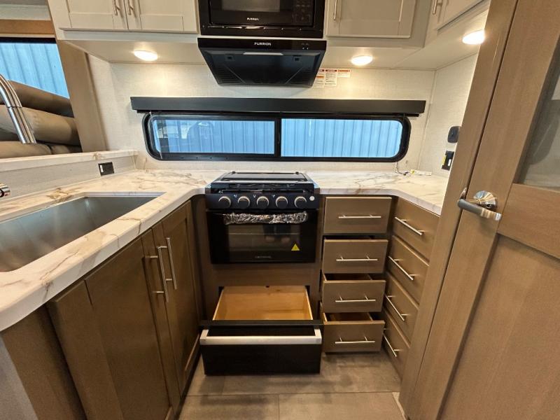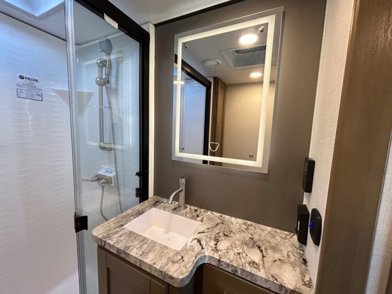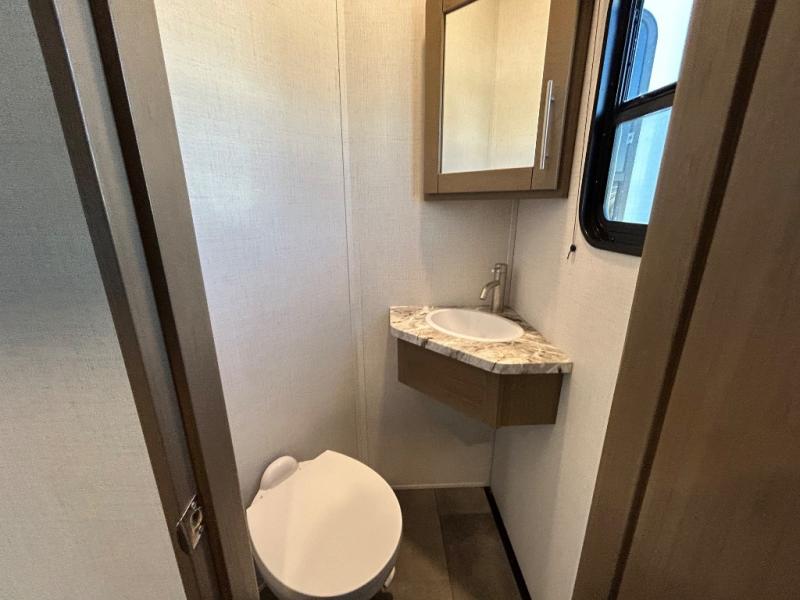 Embrace the great outdoors with a Fuzion Impact Edition toy hauler by Keystone! There are laminated fiberglass sidewalls and a 8' 4" wide-body construction for your toys and gear! The one-piece polypropylene heated underbelly includes enclosed tanks and valves which will help extend your camping season, and the leaf spring suspension system will provide smooth towing. Head inside to enjoy night shades, hardwood cabinetry, and fiberglass backed linoleum floor with no carpet for easy cleaning. Each model also includes a Girard on-demand water heater, two 30 lb. LP tanks, recessed LED puck lighting throughout, and the list of comforts goes on!