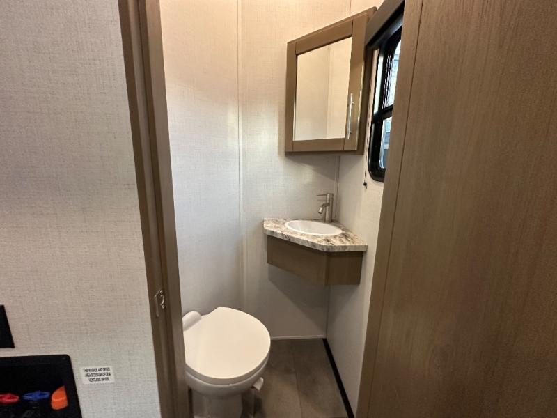 Embrace the great outdoors with a Fuzion Impact Edition toy hauler by Keystone! There are laminated fiberglass sidewalls and a 8' 4" wide-body construction for your toys and gear! The one-piece polypropylene heated underbelly includes enclosed tanks and valves which will help extend your camping season, and the leaf spring suspension system will provide smooth towing. Head inside to enjoy night shades, hardwood cabinetry, and fiberglass backed linoleum floor with no carpet for easy cleaning. Each model also includes a Girard on-demand water heater, two 30 lb. LP tanks, recessed LED puck lighting throughout, and the list of comforts goes on!