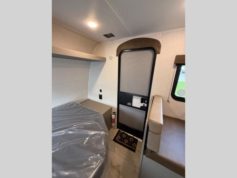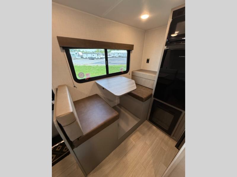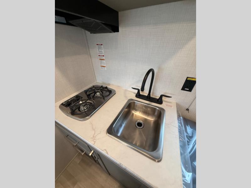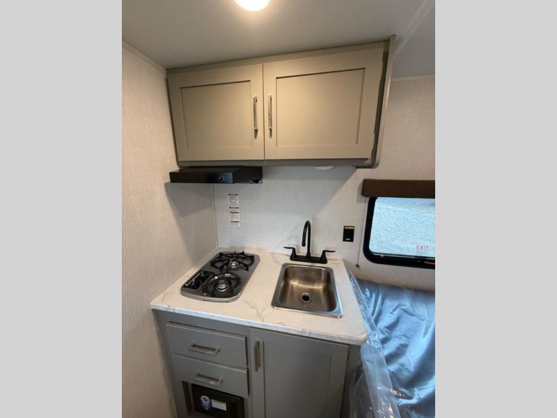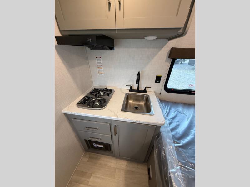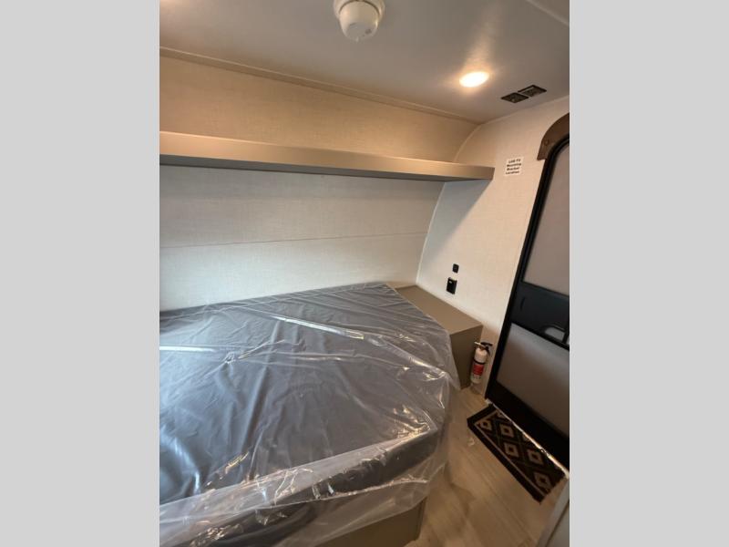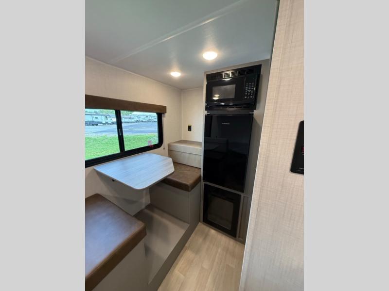 With any Hideout Mini travel trailer by Keystone, you will enjoy lightweight towing thanks to their single-axle! The AlphaPly TPO roof membrane is ultra durable, and the power awning will provide protection from the sun as you relax in your camp chairs outside. Each model includes blackout night shades, LED lighting, plus many more interior comforts. There is also a roof A/C and 20K BTU furnace to keep you comfortable, plus a tankless water heater for endless hot showers!