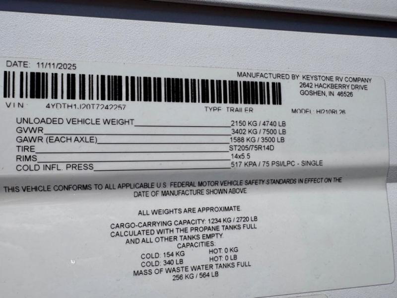 New 2026 Keystone RV Hideout 210RL Travel Trailer