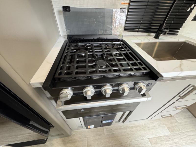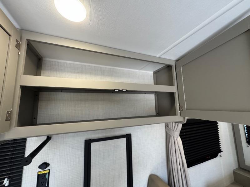 The whole gang will love camping in this travel trailer with double-size bunks! You'll enjoy your own Olympic RV queen bed up front in the semi-private bedroom, along with dual wardrobes to keep your things tidy. Once the chef of your group has made dinner on the three-burner cooktop, you can dine at the booth dinette or take your plate outdoors to sit under the 16' power awning with LED lights. There is also a sofa with an end table inside that will provide additional seating and sleeping space. And don't overlook the rear corner full bath adjacent to the bunks for easy nighttime use!