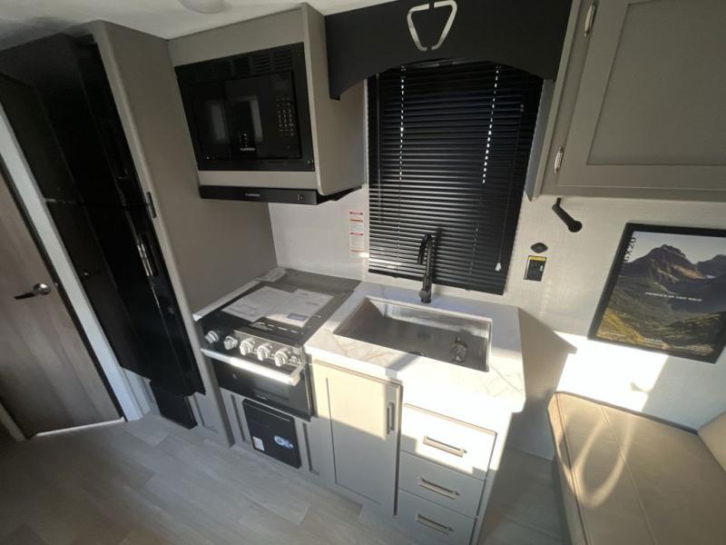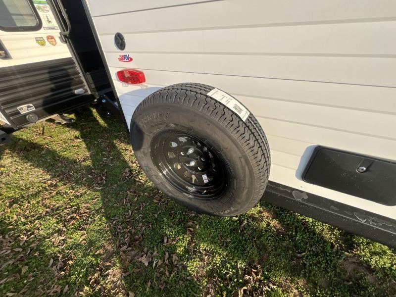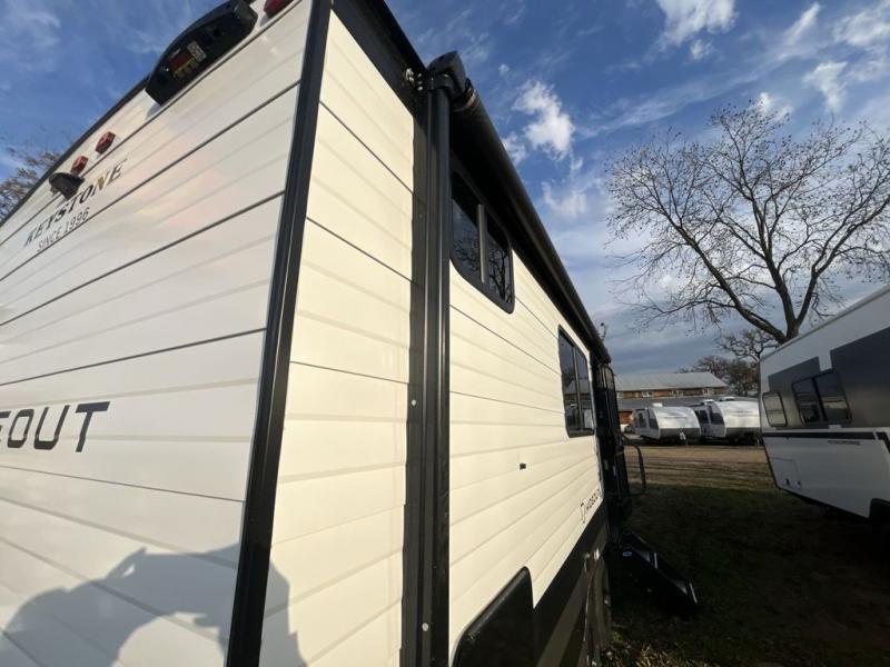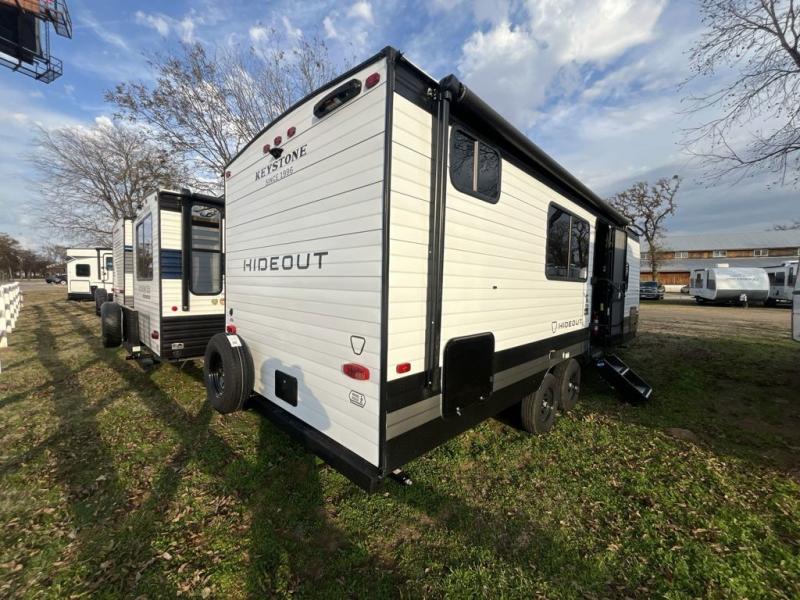 With any Hideout travel trailer by Keystone, you will find functional features and comfort at every turn! Each one is built with tinted safety glass windows and a walkable roof for added durability. There are also Solid Step entry steps outside, along with an outside shower, heavy-duty stabilizer jacks, a spare tire kit and Tire Linc TPMS prep. You'll love the pressed membrane premium countertops inside, plus a decorative tub surround, LED lighting, blackout night shades, and many more comforts. Additional features include a tankless water heater, a porcelain foot flush toilet, a power tongue jack, and an XL entry assist handle to name just a few!