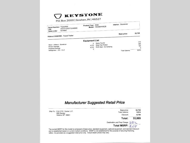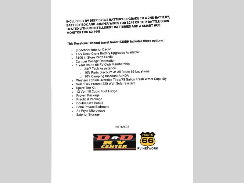 This Keystone Hideout travel trailer 230BH includes these options: