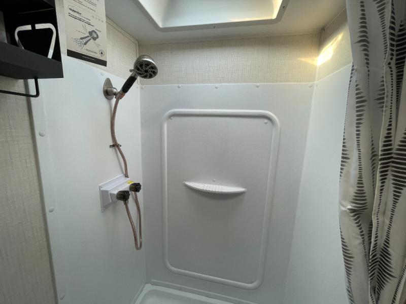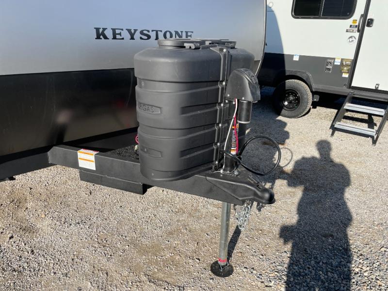 With any Hideout travel trailer by Keystone, you will find functional features and comfort at every turn! Each one is built with tinted safety glass windows and a walkable roof for added durability. There are also Solid Step entry steps outside, along with an outside shower, heavy-duty stabilizer jacks, a spare tire kit and Tire Linc TPMS prep. You'll love the pressed membrane premium countertops inside, plus a decorative tub surround, LED lighting, blackout night shades, and many more comforts. Additional features include a tankless water heater, a porcelain foot flush toilet, a power tongue jack, and an XL entry assist handle to name just a few!