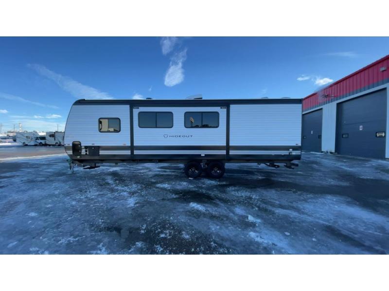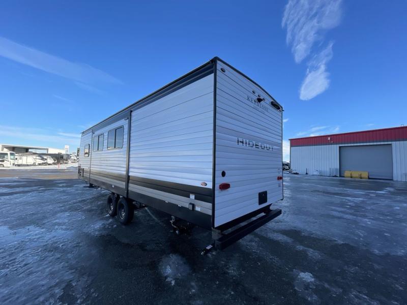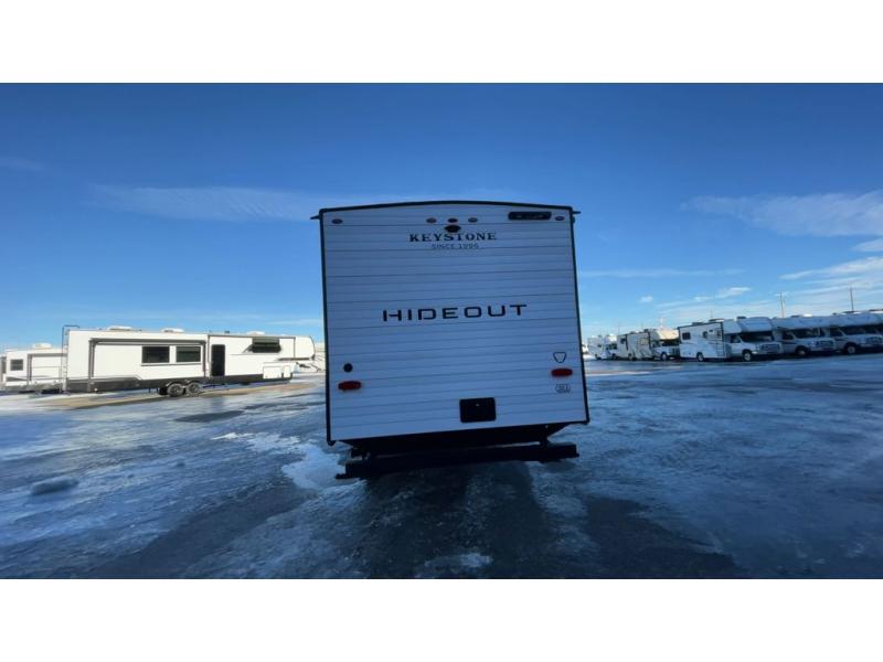 With any Hideout travel trailer by Keystone, you will find functional features and comfort at every turn! Each one is built with tinted safety glass windows and a walkable roof for added durability. There are also Solid Step entry steps outside, along with an outside shower, heavy-duty stabilizer jacks, a spare tire kit and Tire Linc TPMS prep. You'll love the pressed membrane premium countertops inside, plus a decorative tub surround, LED lighting, blackout night shades, and many more comforts. Additional features include a tankless water heater, a porcelain foot flush toilet, a power tongue jack, and an XL entry assist handle to name just a few!