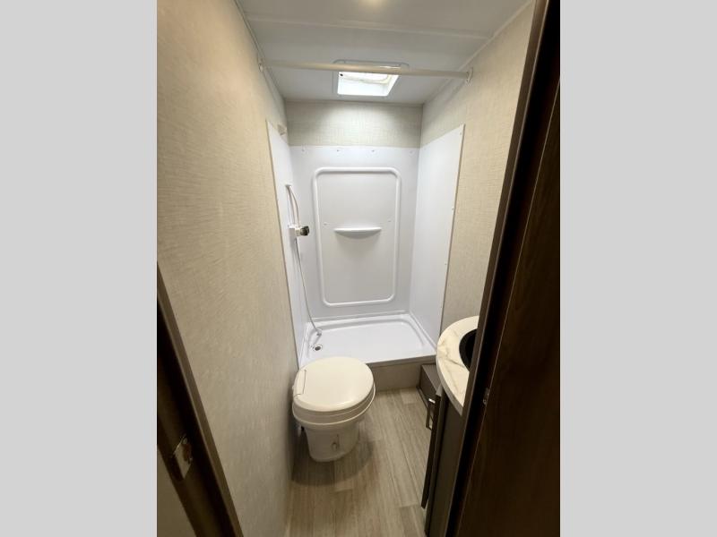 With any Hideout Sport travel trailer by Keystone you will enjoy simplified camping solutions that won't break the bank! Each model is constructed with a durable AlphaPly TPO roof membrane tinted safety glass windows, and an I-beam frame. There are power tongue jacks and heavy duty stabilizer jacks that will make it easier than ever to hitch up and go. An XL entry assist handle will also provide convenience, along with a power awning that will provide much wanted shade during the day. You will feel right at home with stylish decor, blackout night shades, and cozy bed with storage underneath!
