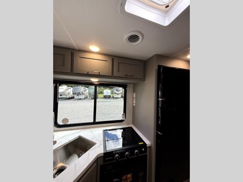 With any Hideout Sport travel trailer by Keystone you will enjoy simplified camping solutions that won't break the bank! Each model is constructed with a durable AlphaPly TPO roof membrane tinted safety glass windows, and an I-beam frame. There are power tongue jacks and heavy duty stabilizer jacks that will make it easier than ever to hitch up and go. An XL entry assist handle will also provide convenience, along with a power awning that will provide much wanted shade during the day. You will feel right at home with stylish decor, blackout night shades, and cozy bed with storage underneath!