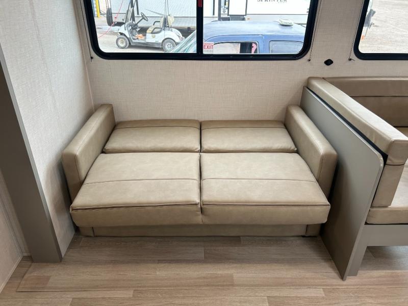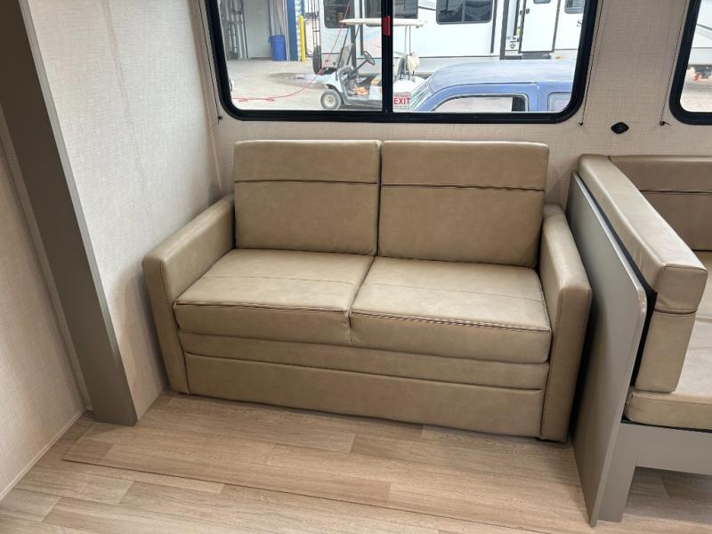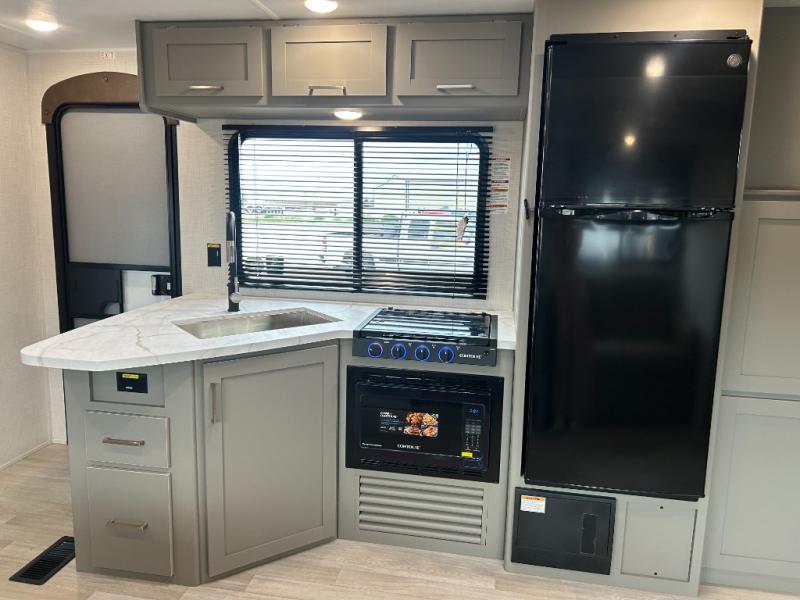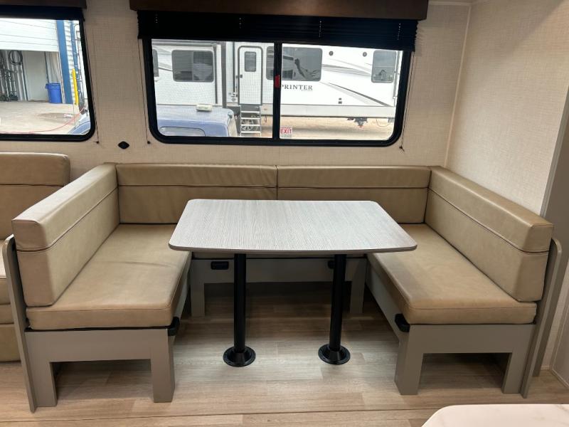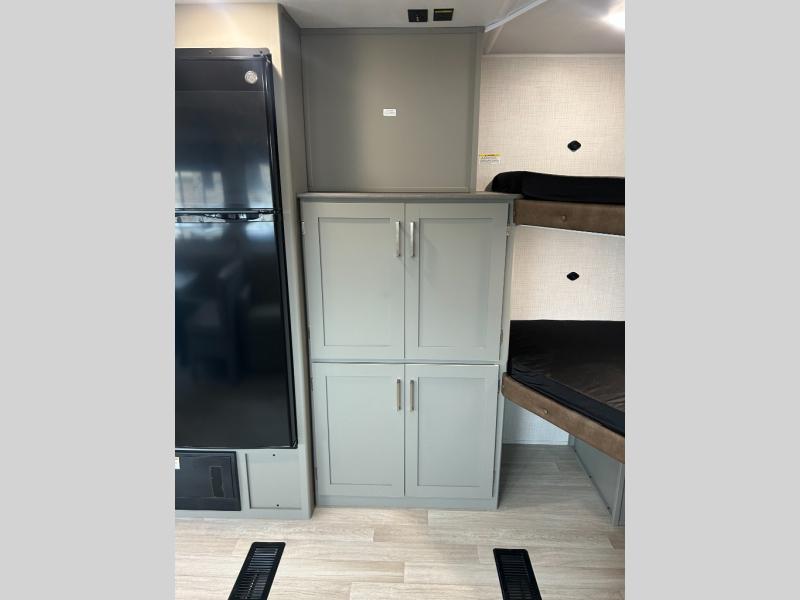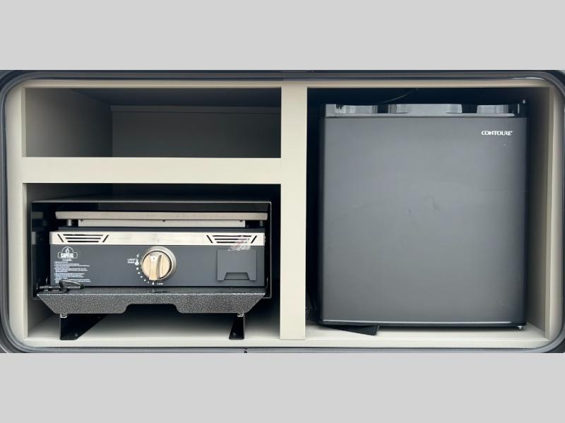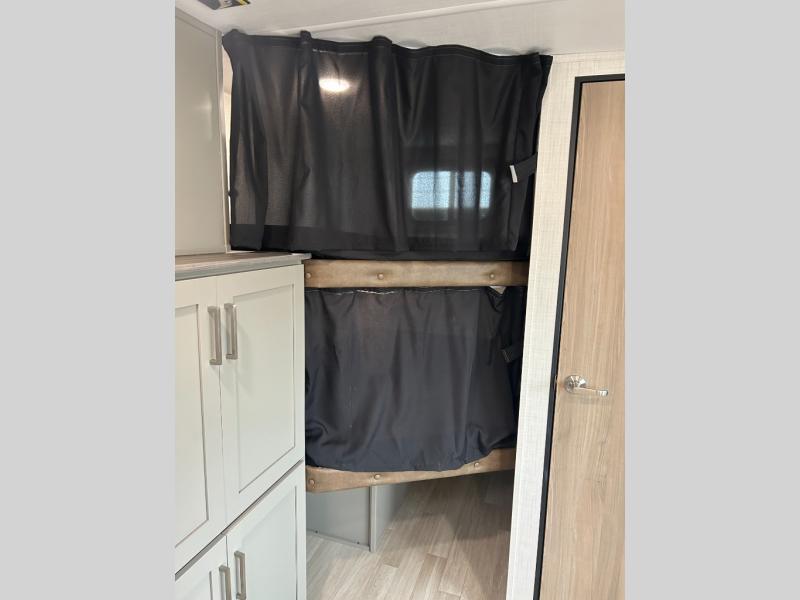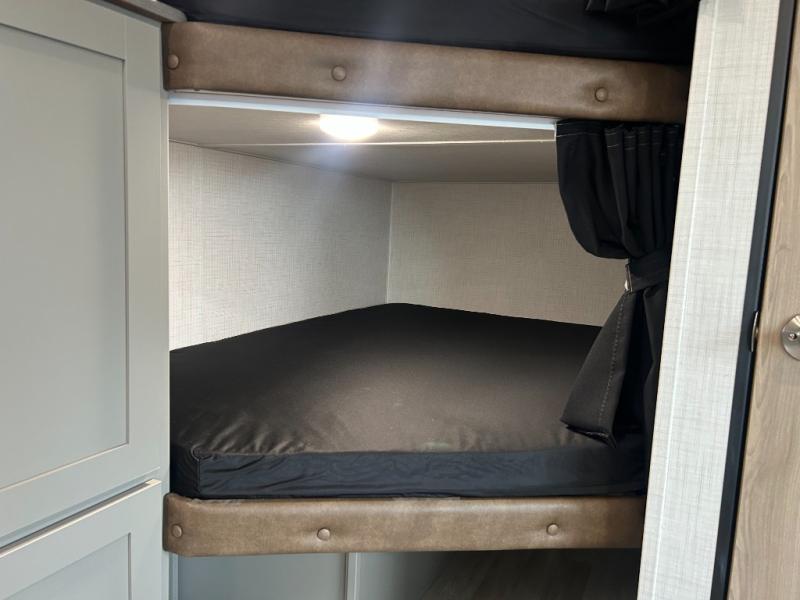 A large slide, front private bedroom, and double-size bunks make this Hideout Sport Double Axle the ultimate travel trailer! You will enjoy a walk-around queen bed in the bedroom plus dual closets and nightstands for your things. The full bath is towards the back and beside the bunks for easy nighttime use, and there is a pass-through storage outside for your gear. Head to the kitchen to prepare lunch on the cooktop, then dine at the U-shaped dinette and sofa within the large slide. If the weather is nice, you might just want to cook outdoors on the outside kitchen under the 18' power awning!