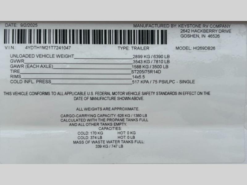New 2026 Keystone RV Hideout 269DB Travel Trailer
