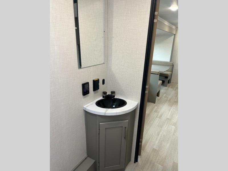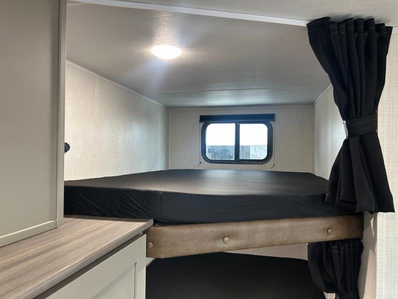 With any Hideout Sport travel trailer by Keystone you will enjoy simplified camping solutions that won't break the bank! Each model is constructed with a durable AlphaPly TPO roof membrane tinted safety glass windows, and an I-beam frame. There are power tongue jacks and heavy duty stabilizer jacks that will make it easier than ever to hitch up and go. An XL entry assist handle will also provide convenience, along with a power awning that will provide much wanted shade during the day. You will feel right at home with stylish decor, blackout night shades, and cozy bed with storage underneath!