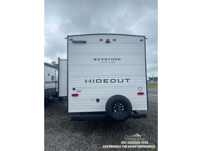 With any Hideout Sport travel trailer by Keystone you will enjoy simplified camping solutions that won't break the bank! Each model is constructed with a durable AlphaPly TPO roof membrane tinted safety glass windows, and an I-beam frame. There are power tongue jacks and heavy duty stabilizer jacks that will make it easier than ever to hitch up and go. An XL entry assist handle will also provide convenience, along with a power awning that will provide much wanted shade during the day. You will feel right at home with stylish decor, blackout night shades, and cozy bed with storage underneath!
