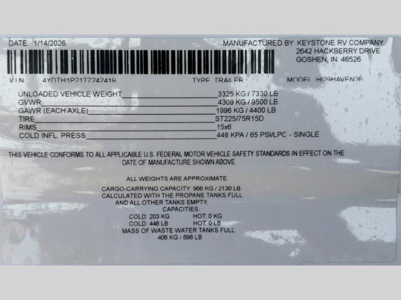 New 2026 Keystone RV Hideout 29HAVEN Travel Trailer