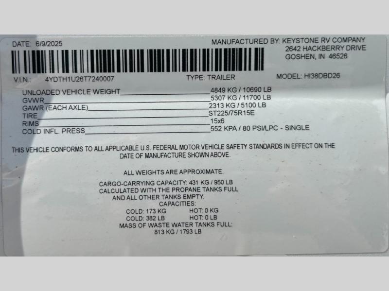 | VIN | 4YDTH1U26T7240007 |