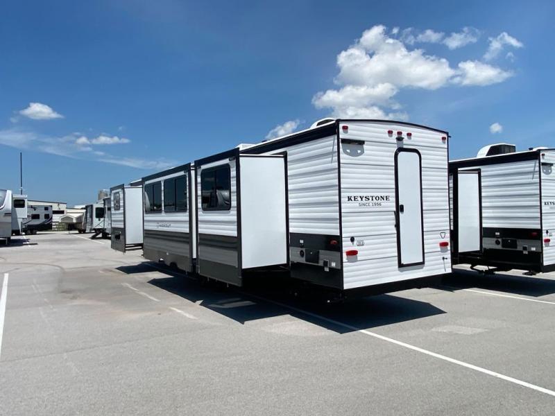 Bring everyone together in comfort and style with the Keystone Hideout Cottage 38BHT destination trailer. Designed for extended stays and memorable getaways, this spacious floorplan offers the privacy families and groups need with the open living space everyone loves. From dual private sleeping areas to residential-style features, this Hideout Cottage makes every trip feel like home.