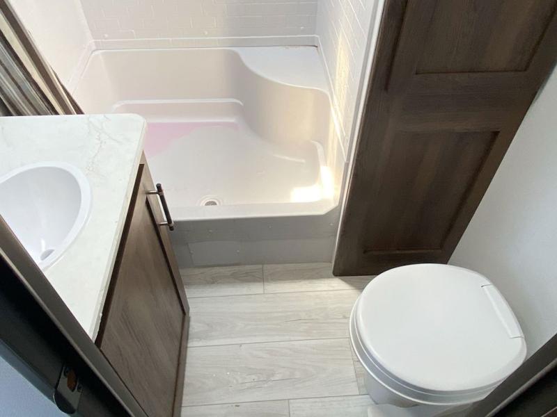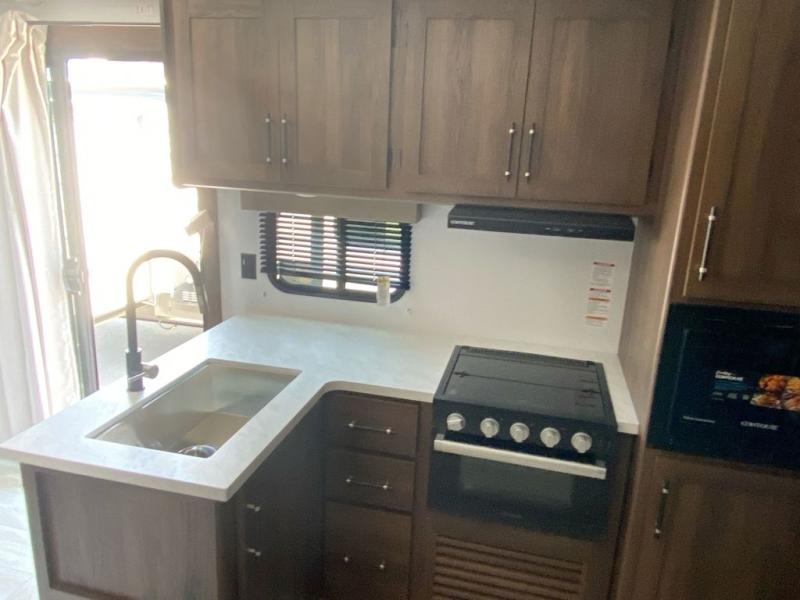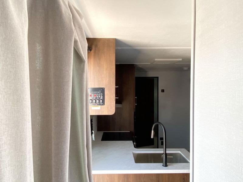 Every Keystone Hideout Cottage destination trailer is crafted with quality materials to support long-term enjoyment. Features like Dura-floor construction, an AlphaPly TPO roof membrane, and tinted Solar Cool safety glass windows provide lasting durability and energy efficiency. Inside, you will appreciate residential-style touches such as blackout night shades, a waterfall kitchen sink, full-extension drawer glides, and a shower skylight for extra headroom and natural light. Exterior highlights include heavy-duty stabilizer jacks, an XL entry assist handle, and a convenient exterior shower.
