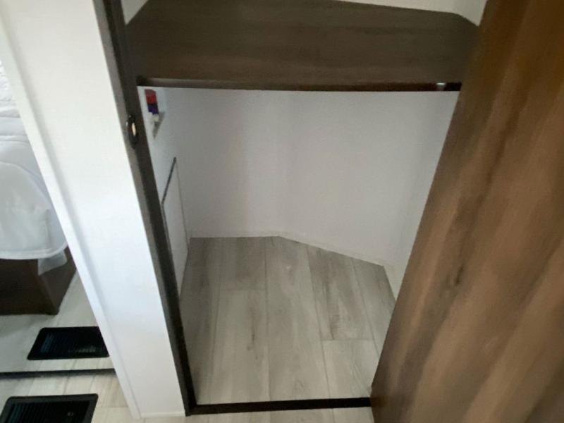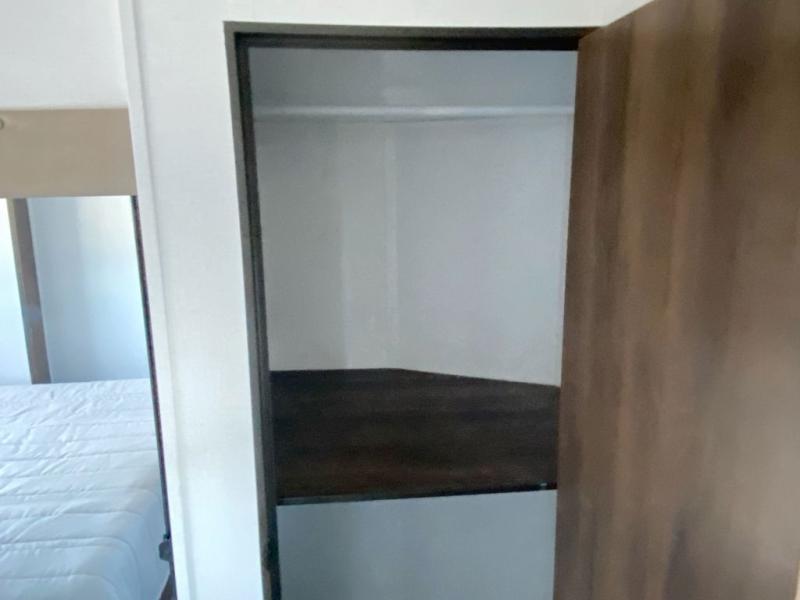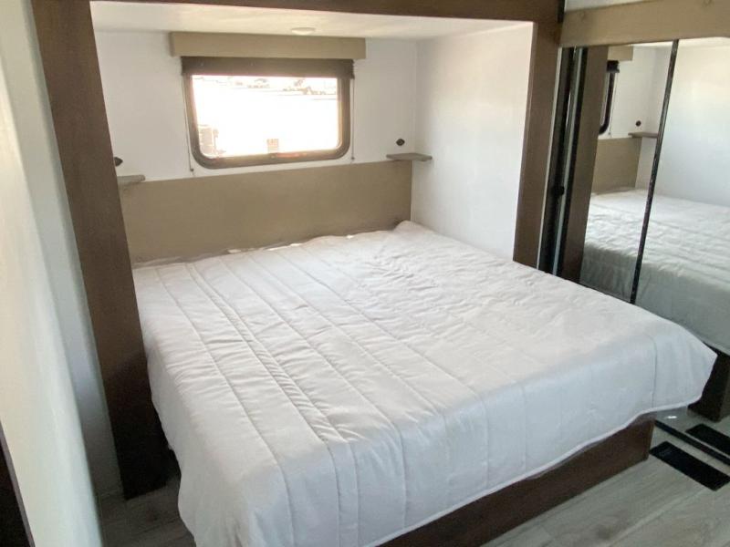 • Front private bedroom with king bed slide, dresser, closet, and washer and dryer prep