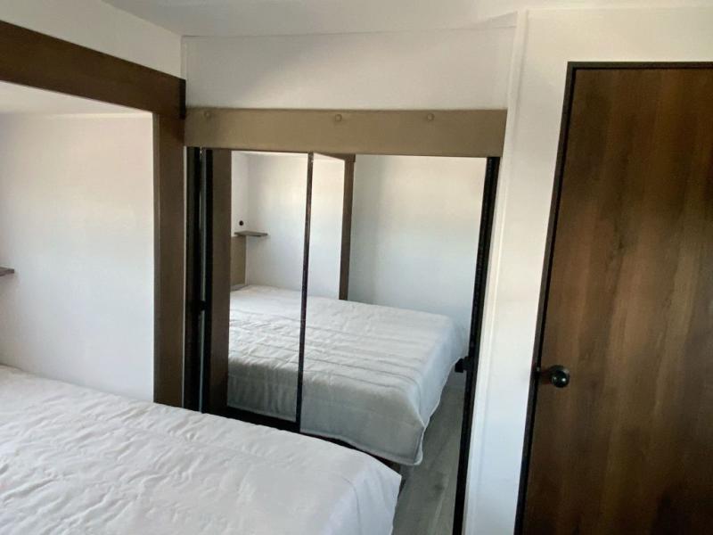 This well-thought-out layout makes traveling with friends and family effortless. The front bedroom offers a quiet retreat, while the rear bunkhouse gives kids or guests their own private suite. Everyone can gather in the central living area to share meals, watch a movie by the fireplace, or plan the day’s adventures.