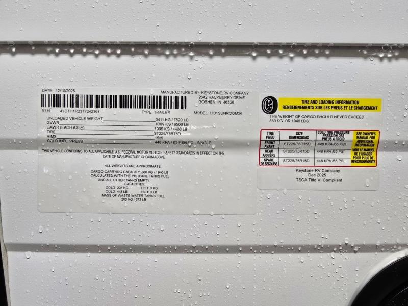 New 2026 Keystone RV Hideout Max 31SUNROOM Travel Trailer