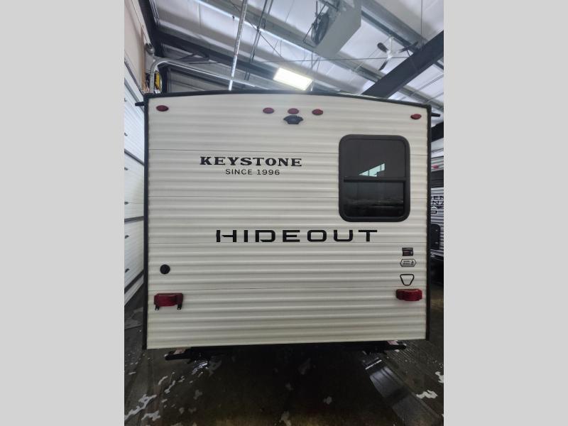 With any Hideout Mini travel trailer by Keystone, you will enjoy lightweight towing thanks to their single axle! The XL tinted safety glass windows are ultra durable, and the power awning will provide protection from the sun as you relax in your camp chairs outside. Each model includes blackout night shades, LED lighting, plus many more interior comforts. There is also a 20K BTU furnace to keep you comfortable, plus a tankless water heater for endless hot showers!