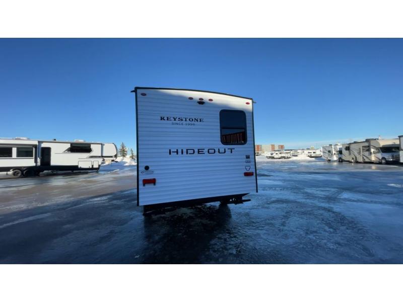 With any Hideout Mini travel trailer by Keystone, you will enjoy lightweight towing thanks to their single axle! The XL tinted safety glass windows are ultra durable, and the power awning will provide protection from the sun as you relax in your camp chairs outside. Each model includes blackout night shades, LED lighting, plus many more interior comforts. There is also a 20K BTU furnace to keep you comfortable, plus a tankless water heater for endless hot showers!