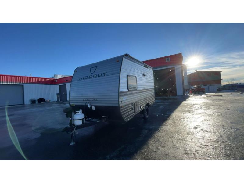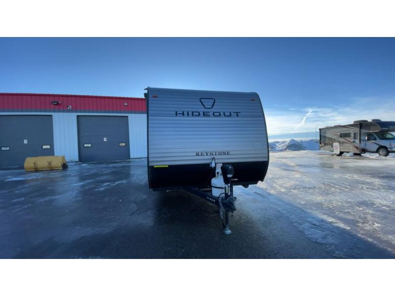 With any Hideout Mini travel trailer by Keystone, you will enjoy lightweight towing thanks to their single axle! The XL tinted safety glass windows are ultra durable, and the power awning will provide protection from the sun as you relax in your camp chairs outside. Each model includes blackout night shades, LED lighting, plus many more interior comforts. There is also a 20K BTU furnace to keep you comfortable, plus a tankless water heater for endless hot showers!