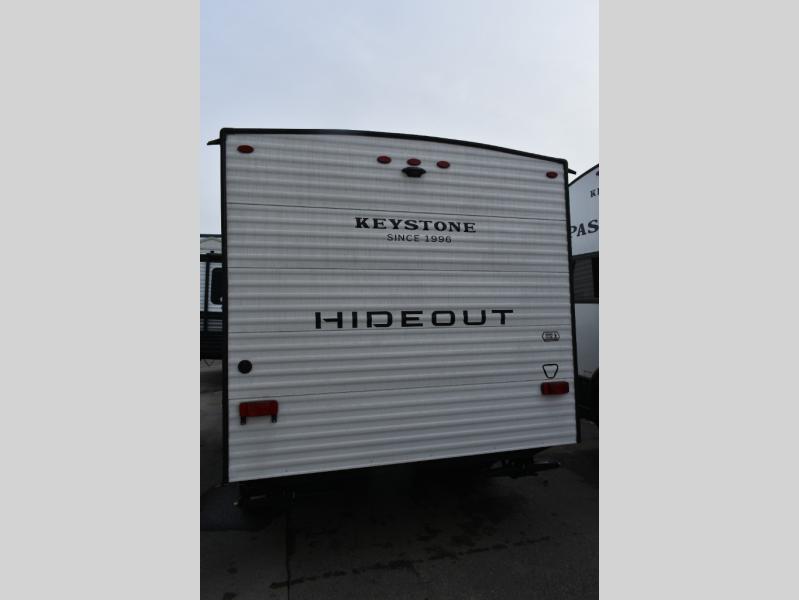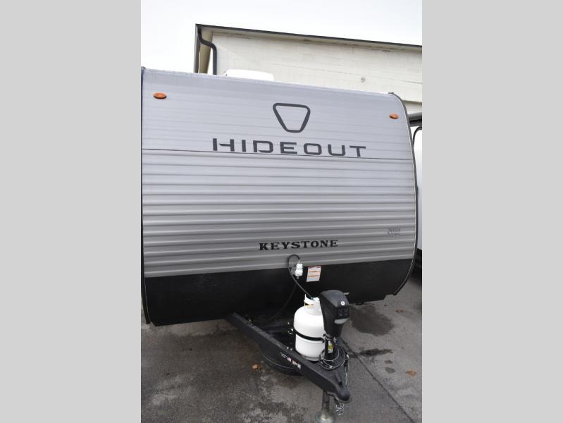 With any Hideout Mini travel trailer by Keystone, you will enjoy lightweight towing thanks to their single axle! The XL tinted safety glass windows are ultra durable, and the power awning will provide protection from the sun as you relax in your camp chairs outside. Each model includes blackout night shades, LED lighting, plus many more interior comforts. There is also a 20K BTU furnace to keep you comfortable, plus a tankless water heater for endless hot showers!