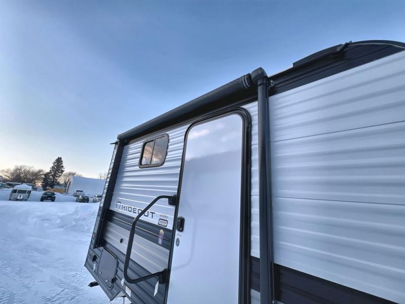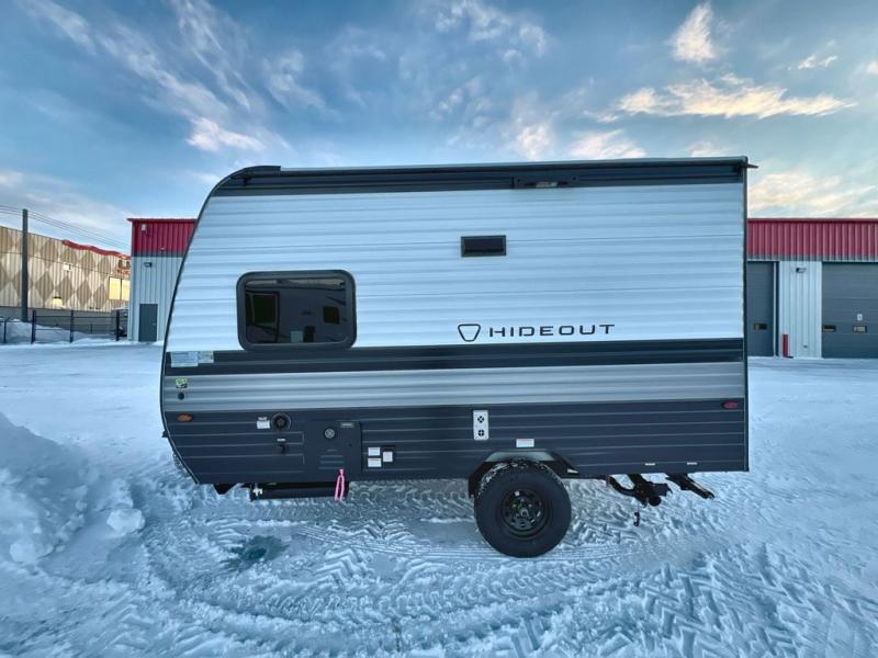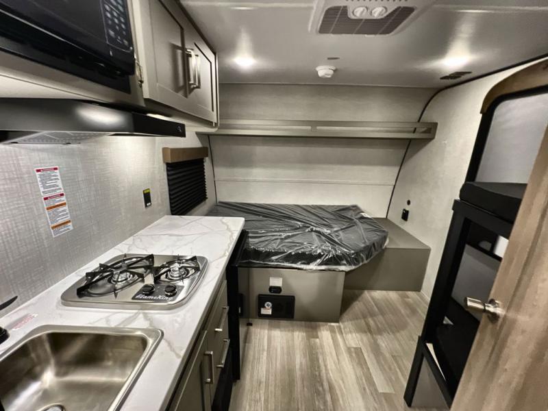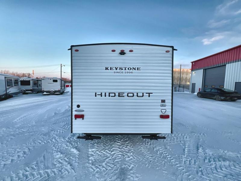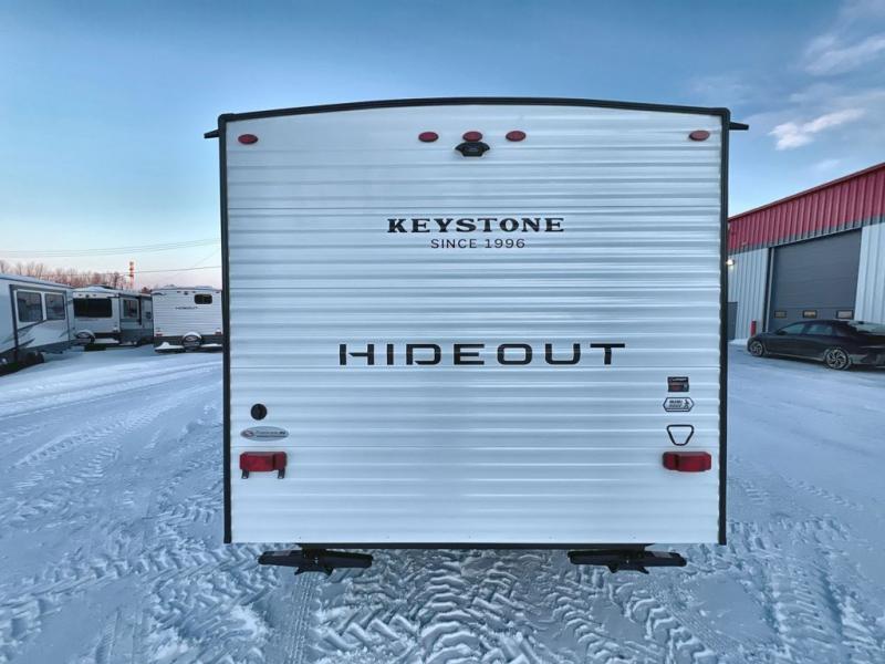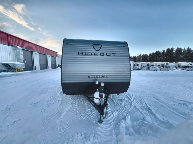 With any Hideout Mini travel trailer by Keystone, you will enjoy lightweight towing thanks to their single axle! The XL tinted safety glass windows are ultra durable, and the power awning will provide protection from the sun as you relax in your camp chairs outside. Each model includes blackout night shades, LED lighting, plus many more interior comforts. There is also a 20K BTU furnace to keep you comfortable, plus a tankless water heater for endless hot showers!