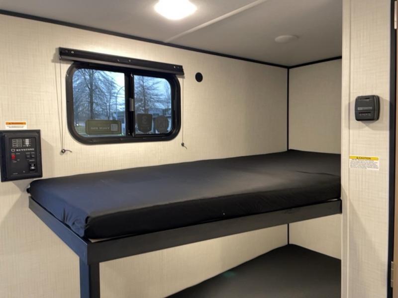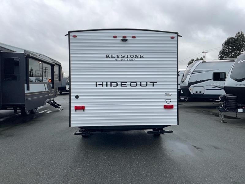 With any Hideout Mini travel trailer by Keystone, you will enjoy lightweight towing thanks to their single axle! The XL tinted safety glass windows are ultra durable, and the power awning will provide protection from the sun as you relax in your camp chairs outside. Each model includes blackout night shades, LED lighting, plus many more interior comforts. There is also a 20K BTU furnace to keep you comfortable, plus a tankless water heater for endless hot showers!