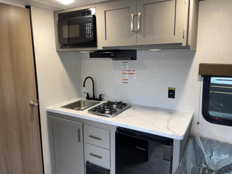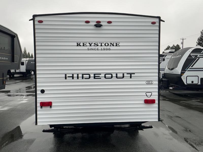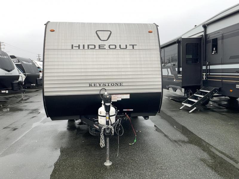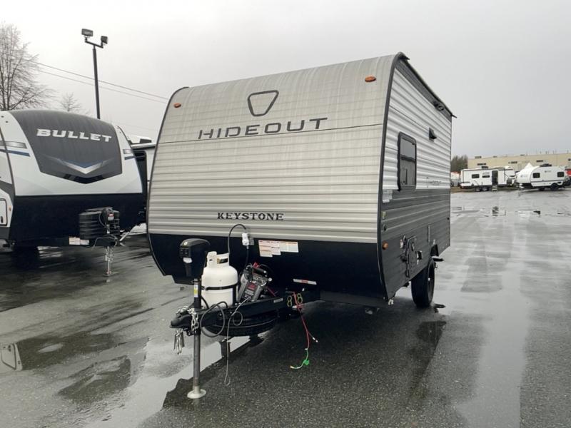 With any Hideout Mini travel trailer by Keystone, you will enjoy lightweight towing thanks to their single axle! The XL tinted safety glass windows are ultra durable, and the power awning will provide protection from the sun as you relax in your camp chairs outside. Each model includes blackout night shades, LED lighting, plus many more interior comforts. There is also a 20K BTU furnace to keep you comfortable, plus a tankless water heater for endless hot showers!