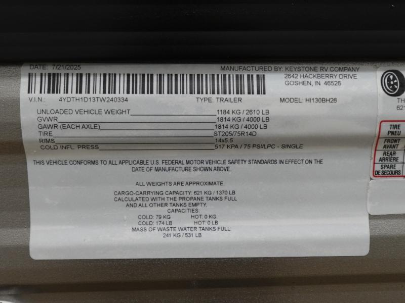 New 2026 Keystone RV Hideout Mini 130BH Travel Trailer